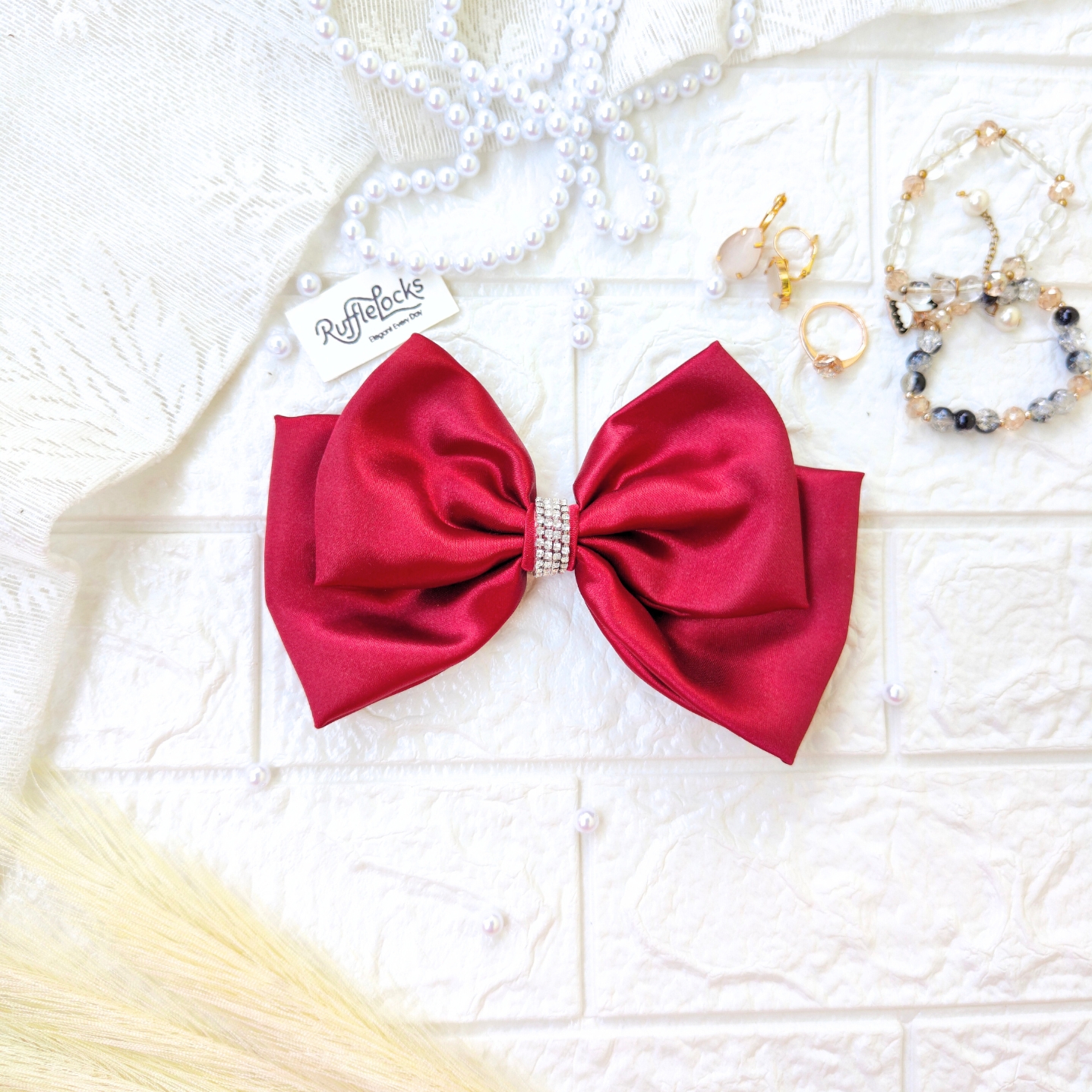 1 review for Two Layer Hair Bow | Maroon | Stone Chain